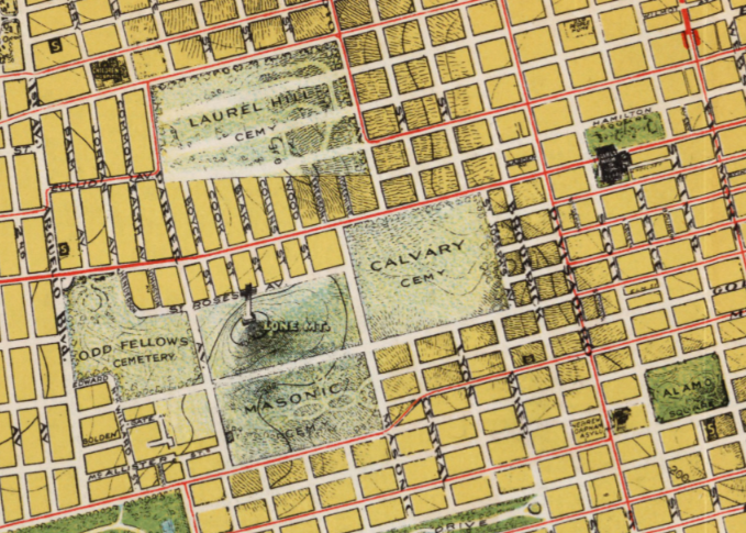 Cemetery detail from 1912 SF map for Panama-Pacific Int’l Exposition