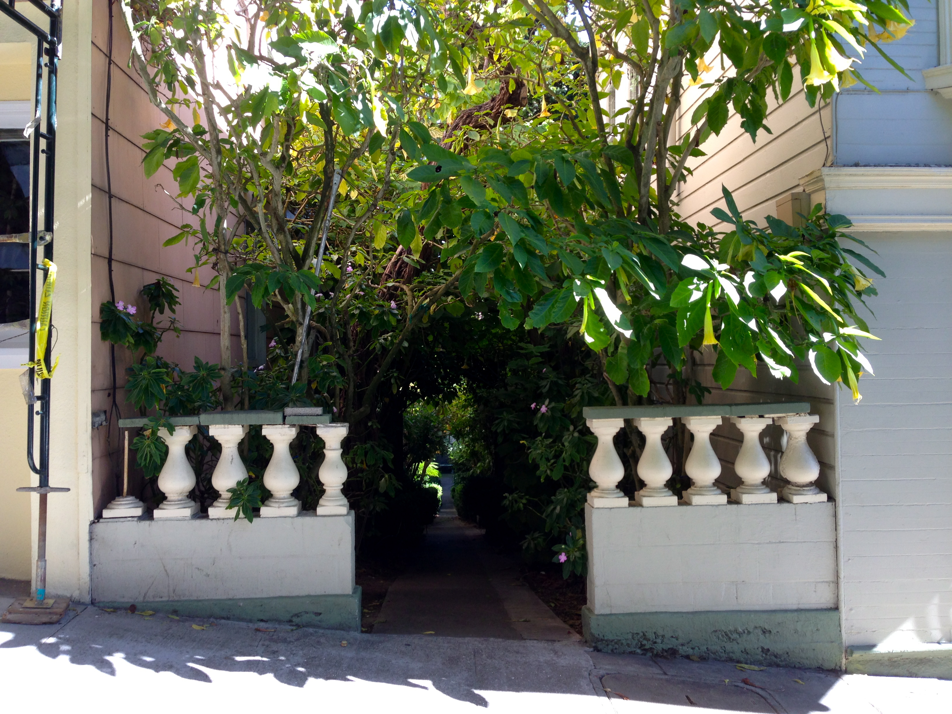 Opening at the south side of Sacramento Street between Leroy Place and Leavenworth, Golden Court is an herbaceous and splendid walkway that leads to ten or more living quarters. While its name may initially seem stock for a San Francisco street, its rather disturbing history is in fact tied to John and Ellen Golden who lived in a two-story cottage at its SE end for roughly 30 years in the latter half of the 19th century.