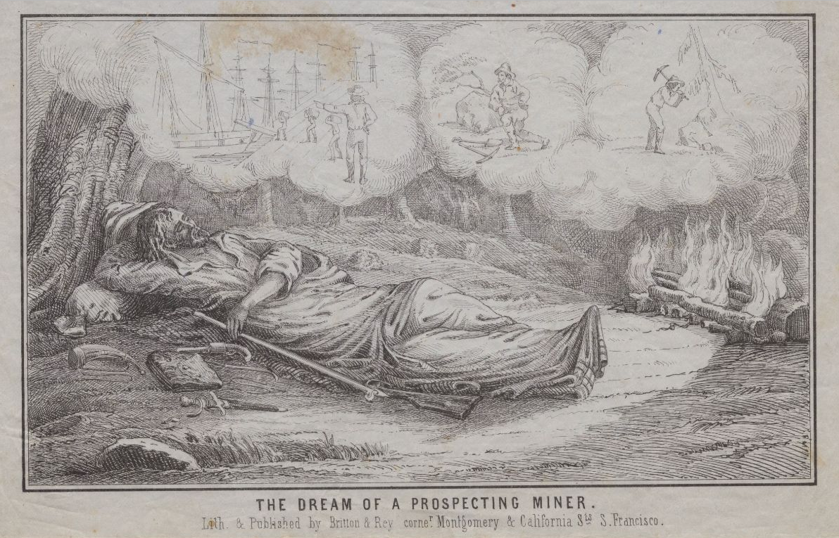The Californian declared it a “revolution”: “in less than four months, a total revolution has been effected in the prospects and the fate of Alta California. Then, the capital was in the hands of a few individuals engaged in trade and speculation, now labor has got the upper hands of capital, and the laboring men hold the great mass of the wealth of the country — the gold. There are now about four thousand white persons, besides a number of Indians engaged in the mines, and from the fact that no capital is required, they are working in companies on equal shares or alone with their basket. . . . a fair competition in labor without the influence of capital, men who were only able to procure one month’s provisions, have now thousands of dollars of the precious metal. The laboring class have now become the capitalists of the country. . . . As to the future hopes of California, her course is onward, with a rapidity which will astonish the world. Her unparalleled gold mines, silver mines, iron ore and lead, with the best climate in the world, and the richest soil, will make it the garden spot of creation.”<<< While indeed the last four months was generally prosperous in regard to what was happening in the territory, the Californian did report some negatives as well.