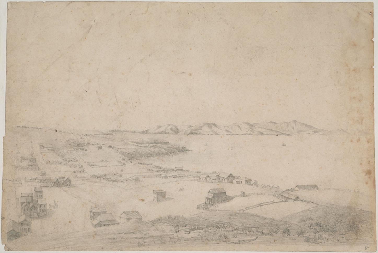 By January 1851, Telegraph Hill was well-known as such: “San Francisco can certainly boast of containing a spot, from which one of the grandest views in the world may be enjoyed,” wrote the Alta. “We climbed to the summit of Telegraph Hill, yesterday, and spent an hour in gazing upon the scene around us. On the one side was the Golden Gate of our noble harbor against whose rocky portals the white waves of the Pacific were dashing. Far off in the distance to the edge of the horizon, lay old ocean, sleeping calm as a child upon its mother’s breast — and the well-filled sails of vessels, laden with the riches of the Eastern world, were bearing then into our harbor. . . . The scene is one of grandeur and of beauty, and our citizens can spend a pleasant hour in taking a morning or an afternoon stroll to the top of Telegraph Hill.” (Daily Alta, Jan. 30, 1851, p. 2, c. 5) Duer returned to San Francisco Bay in 1854 aboard the U. S. steam frigate Susquehanna following a period of engagement “in cruising in the Chinese and Japan seas.” (Daily Alta, Nov. 16, 1854, p. 11, c. 3) Of Duer’s brief visit, the Alta wrote: “AN OLD FRIEND. — Mr. Duer is one of this city’s oldest friends, having passed most of the years 1848, ’49 and ’50 on this coast, attached to the squadron in our waters. He was the first to devise and carry into execution a system of Marine Telegraph from the present station on Telegraph Hill, and was also one of the first pilots for sea-going vessels to Benicia. His services will be remembered by all who were here at the time.” (Daily Alta, Nov. 17, 1854, p. 2, c. 1) Soon after, Duer returned to the Eastern States, and was attached to the U. S. surveying schooner Varina, working as an assistant in the coastal survey of Florida’s western coast. Born on Dec. 26, 1818 in Albany, N. Y., Duer died in Apalachicola, Fla. on June 14, 1859, aged 41 years. (New York Evening Post, June 27, 1859) He was survived by his wife, Georgiana, and five children.